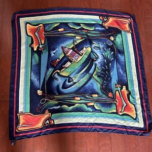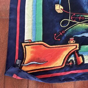 Conoco 100% Silk Scarf Nautical Theme Made In Italy 33x33in