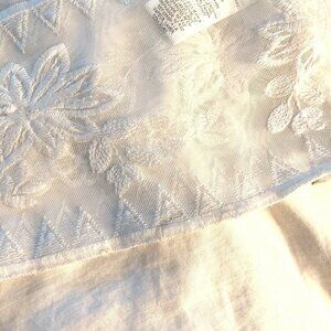Style B63139MU. Cream White Tank with White Overlay Top that is Emroidered with a Floral Pattern. Short Loose Dolman Style Sleeve. Some Shelf Wear, *smudge on overlay at center chest and black mark at bottom inside of hem, see photos. Most likely can be removed with washing.