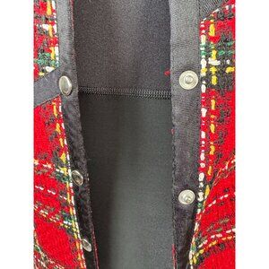 Conrad C Collection Womens Red Plaid Tweed Blazer Jacket Size 6 Silk Blend