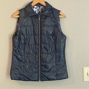 Conrad C Collection reversible puffer vest. Deep navy, grey & white. Women’s 6.