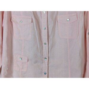 Conrad C Plus size 2X Pink 100% Linen Roll-Up Long Sleeve Button Shirt Blouse