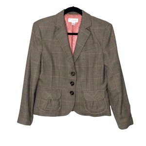 Conrad C Wool Blend Blazer Womens Suit Jacket 10 Petite Brown Plaid Windowpane