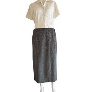 Conrad C Collection 100% wool 2 pc set blazer skirt black white houndstooth L 1