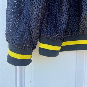 Conrad Collection Chic Black Mesh Bomber Jacket with Yellow Trim