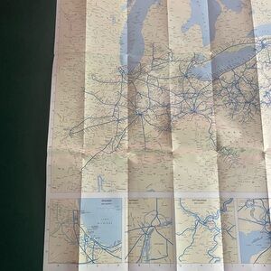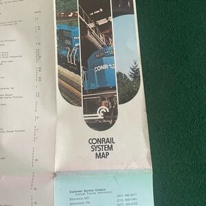 Vintage Conrail system map, circa. 1978. Shows system-wide routes and route structure detail for multiple localities. In good condition. Some minor edge/corner wear at folds.