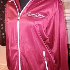 Stylish conscious collection calculated streetwear Hot off the press hot off the press. This is the last one left. You know these colors hit hard. Red white and black men's medium.jogging suit. Elastic waist pants all embroidered zip up jacket brand new with tags Antoine MaddoxBey