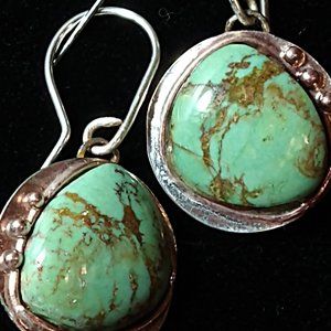 Beautiful Green Turquoise w black/gold veins, Sterling Silver, Copper bezel
