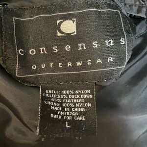 Consensus Outerwear Black Puffer Vest Coat Size Large Duck Down Filled