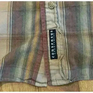Consensus Sportswear Button Up Shirt Mens XLT Plaid Long Sleeve Cotton Brown