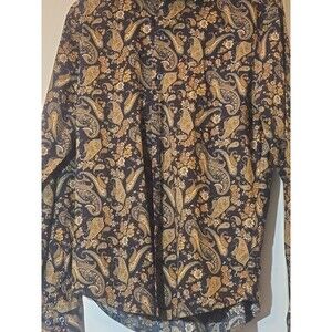 Consequence Button Up Shirt Mens Size S Black Paisley Floral Long Sleeve Stretch