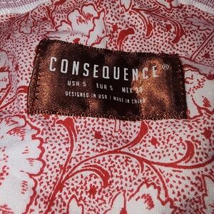 Consequence Mens Button-up Red And White Poppy Print Shirt Small