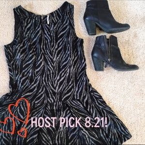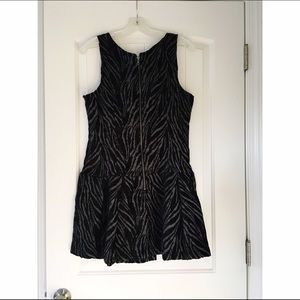 Super cute Chenille Zebra Drop Waist dress by Free People. Perfect for the upcoming Autumn weather! Chenille detail over rayon/polyester blend. Hand wash. Side slit pockets and exposed zipper. EUC.