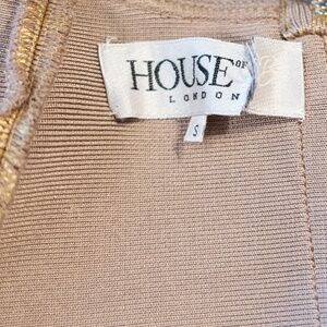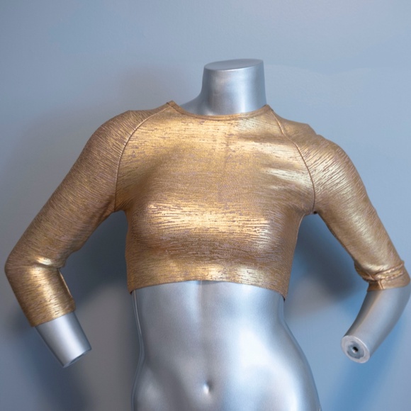 Listing is a consignment for another Posher. Thick spandex gold textured crop top with elbow length sleeves. Zippered closure at back. Pre-owned good condition with light wear.