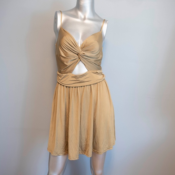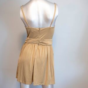 Part of Pohsmark's consignment program. Gold/khaki mini dress-perfect for dancing. Pre-owned fair condition with light pilling in a few spots.