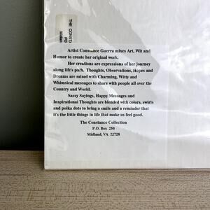Original "our aim is to keep this bathroom clean..." artwork by Constance Guerra, matted to 8" x 10". New in plastic envelope, however some of the glitter has fallen off the artwork as shown.