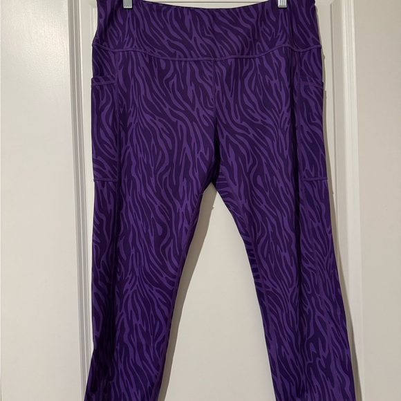 Experience the perfect blend of style and comfort with these purple leggings from Constantly Varied Gear. Featuring a unique textured pattern, these form-fitting leggings are crafted from a stretchy performance fabric, ensuring both flexibility and durability. The wide waistband and cropped length add to their modern appeal, making them a standout addition to any activewear collection. (3/4 length)