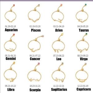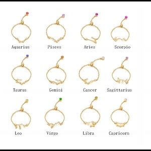 Brand new, boutique item! 18k gold plated over 925 silver over brass. Gorgeous, adjustable gold ring. Fits from a size 5 to a 9. Minimalist style, choose your constellation based on your horoscope. Last pic of horoscope dates.