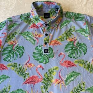 Construct Golf Quick Dry Polo Shirt Mens Size M Tropical Flamingo AOP