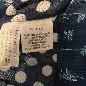 Construct Men’s Swim Trunks Navy Blue Palm Trees Drawstring Size M. Vivid printing decorates a pair of swim trunks with mesh lining for a supported dip. Polka dot print liner.
