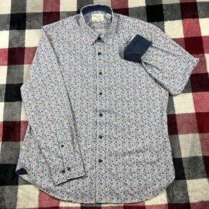 Construct Shirt Mens L Blue Floral -See photos for measurements, as I list and title using the actual tag size on item, and I show the ACTUAL MEASUREMENTS IN THE PHOTOS
