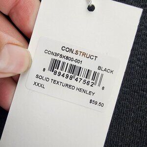 Construct Shirt Mens XXXL Black Long Sleeve Jersey Knit Textured Henley *NWT*