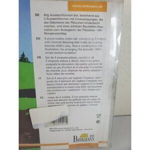 This set of biscuit/cookie cutters is from Germany, still in the original packaging, but the original packaging is bad. There is tearing and discoloration of the clear plastic. The cutters look to be in perfect condition.