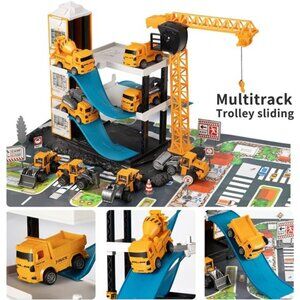 🧿60 pcs Construction Vehicle Combination: This 60pcs engineering car toy kit can meet all the needs of children who like construction, including excavators, dump trucks, cement trucks, rollers, crane, tractors, mixers, and more. All the cars are pull-back vehicles. As well as playmats, a three-story tower and some accessories such as construction signs, roadblocks, and safety cones.(You can install the construction toys by the video)