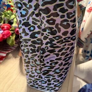 Large Lavender / Gold Consuela leopard print bag. 13 inches tall and 16 inches wide