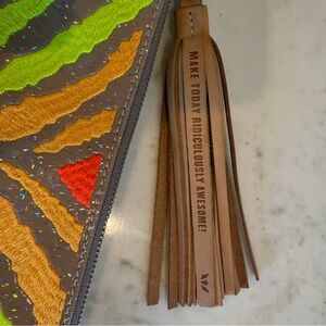 Consuela L-Shaped Clutch. Neon Zebra Embroidery