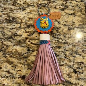 NWOT. Vibrant keychain/purse charm featuring a leopard face. Blue and orange flower design. Multicolor tassel. Unique and stylish accessory.