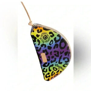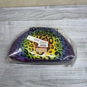 Consuela Semi Multicolor Rainbow Leopard Print Large Cosmetic Dome Zip Pouch New