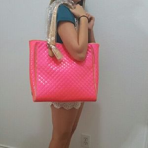 Sold. *Brand New* Consuela Candy Crush Pink Scream Tote. Includes dust cover. Measures 14"x14"x6". Leather handles still plastic wrapped. Tote retails for $350, asking $180. Wallet not available.