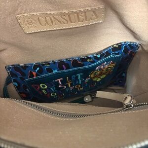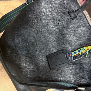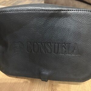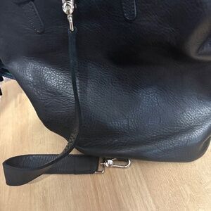 Black leather Consuela can be carried like a backpack,crossbody, on the shoulder or carried on your wrist. Very good condition.