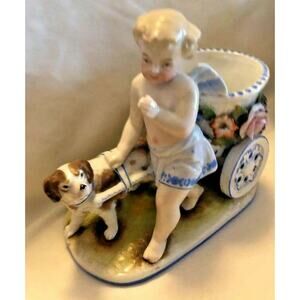 Conta & Boehme Figural Cupid w 'Service Dog' Pulling Vase C1890
