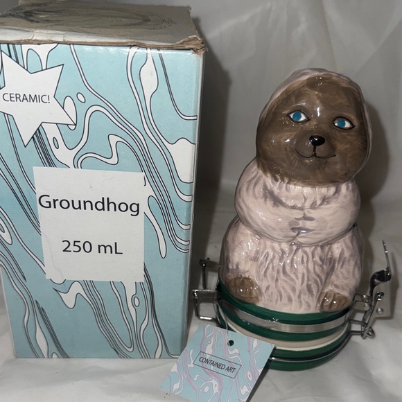 ContainedArt Groundhog Ceramic Jar with Metal Clamp New