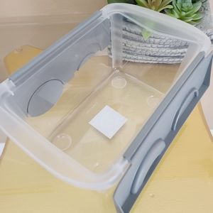 Get organized with this plastic storage container with interlocking lid! Multi-purpose container can be used for food, pet food, school supplies, craft supplies, tools, makeup, and more!