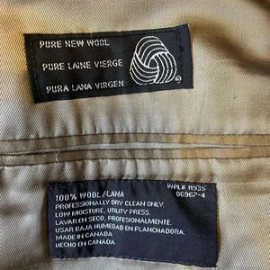 It is suitable for business, casual, formal, party/cocktail, travel, and wedding events. The jacket has a double-vented back and a regular length. The chest size is 48 inches, and the waist size is 46 inches. The jacket should be dry cleaned only. The lining material is polyester, and the jacket is made in Canada. This designer jacket is perfect for boardroom, cocktail party, country club, and church themes.