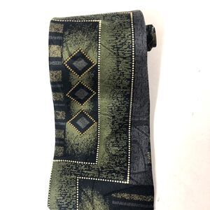 Conte di Milano Silk Tie Vintage 90s Abstract Geometric Green Black Gold