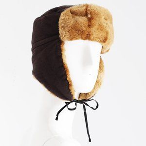 Authentic, preowned Conte of Florence trapper hat. Made from cotton, it features a brown sueded cotton exterior with faux fur trim at the band and ear flaps.