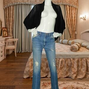 Drape yourself in the sheer sophistication of this Contempo black knit cardigan. Its urban draped silhouette and artistic knit texture blend casual runway chic with a cozy, cutting-edge twist. Perfect for those seeking an effortless style statement with a modern twist. Size S.