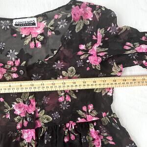 Contempo Casual 90s Floral Sheer Babydoll Fairy Whimsygoth Grunge L/S MEDIUM