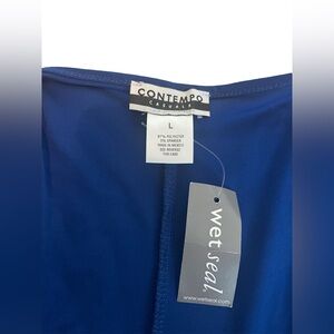 Contempo Casual Deep Blue Women's Wrap Blouse Size: L. NWT. Great Condition.
