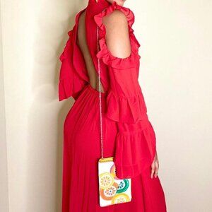 Contemporaray asymmetrical Hem Cold shoulder Midi Dress Red