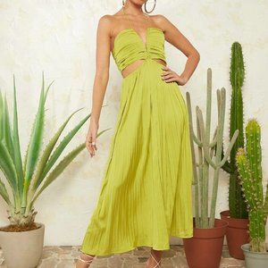 Contemporary Cut Out Waist Ruched Bust Tie Backless Satin Dress green