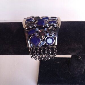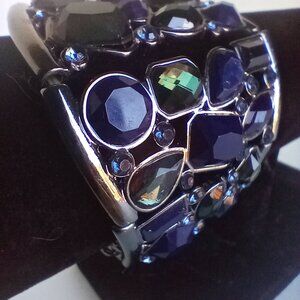 Contemporary Metal and Faux Glass Extra Wide Bracelet