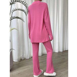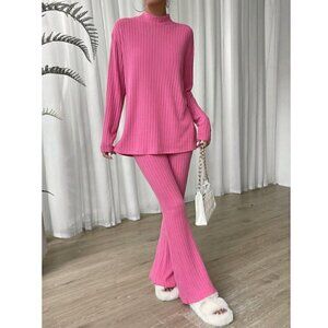 Contemporary Mock Neck Drop Shoulder Tee & Pants Coord Set Pink