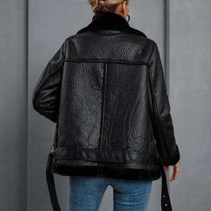 Contemporary Teddy Panel Faux leatherZip Up Moto Jacket Black