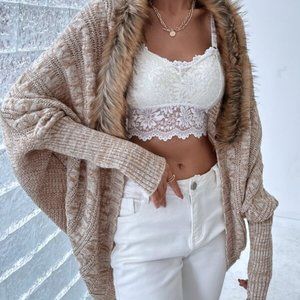 Contemporary vegan faux fur cardigan poncho scarf shawl wrap Acrylic Sizes tags are letters ITEM IS ONE SIZE, size tag one size fits xs-0 S-2/4, M- 6, L -8/10, Xl-12 Ships in 6-10 days fall winter jackets summer hic Summer spring Boho hippie 60’s 90’s 70’s beachy western pool coachella festival birthday gift resort bohemian retro vintage johnny was vacation gypsy spell vici arnhem anthro anthropologie madewell free people faithful love lemons mumu wildfox reformation revolve zara dressy office