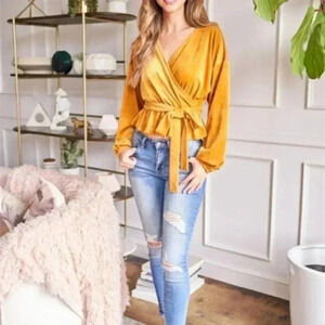 BOHO velour bishop sleeve belted MUSTARD TOP