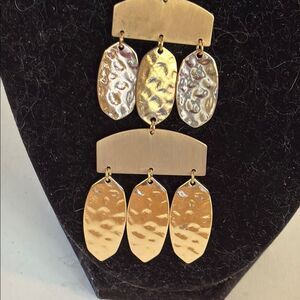Contemporary Long Gold Tone Geometric Art Deco Pendant Necklace 32”